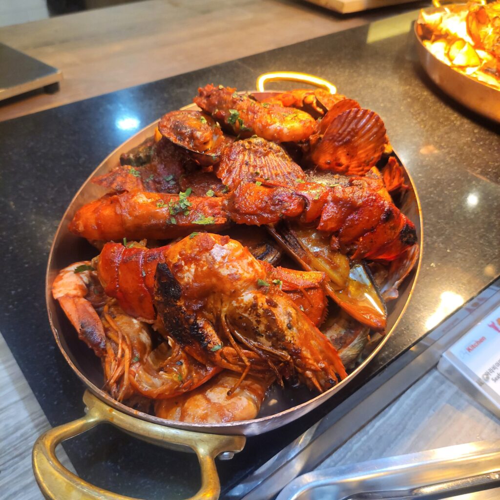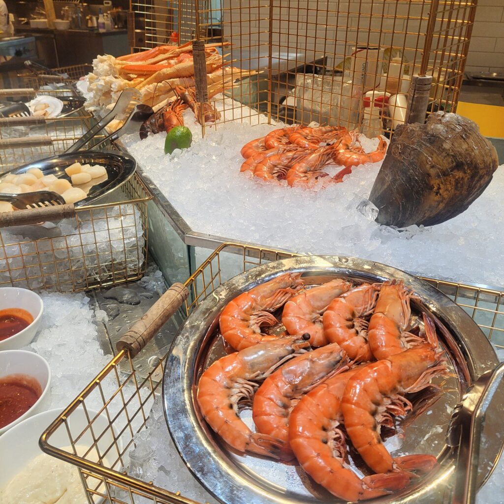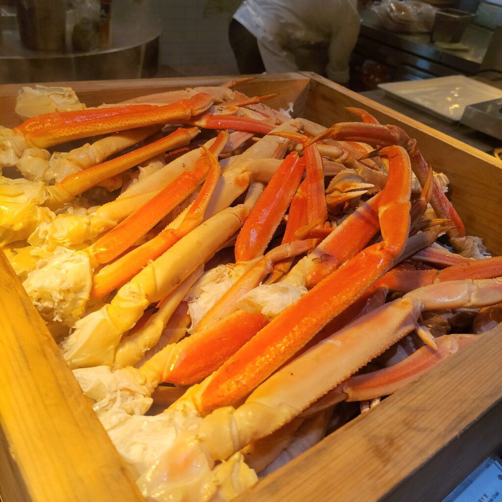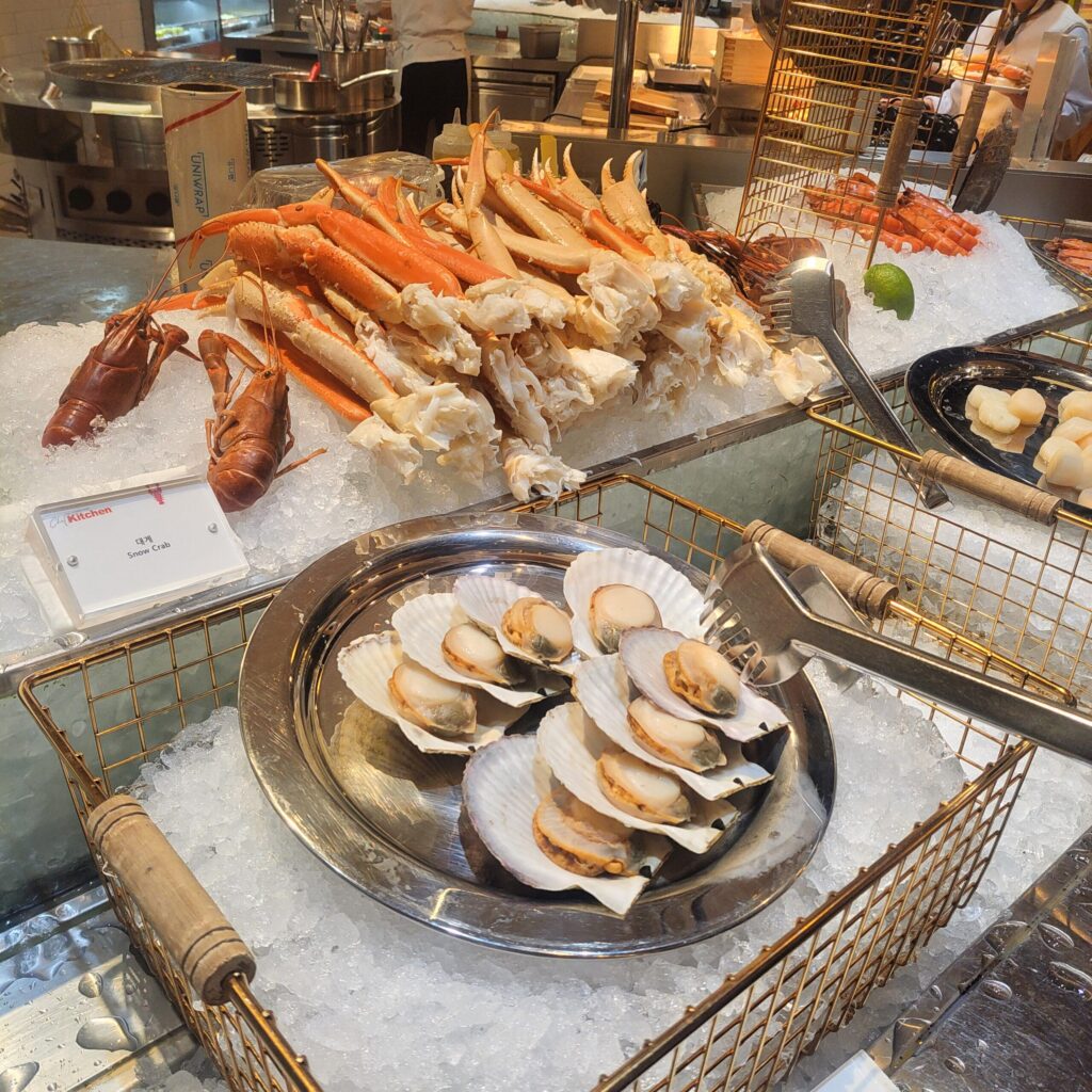 私が一番驚いたのはシーフードコーナー🦀蒸したてのカニ、ロブスター、貝類が豊富!!