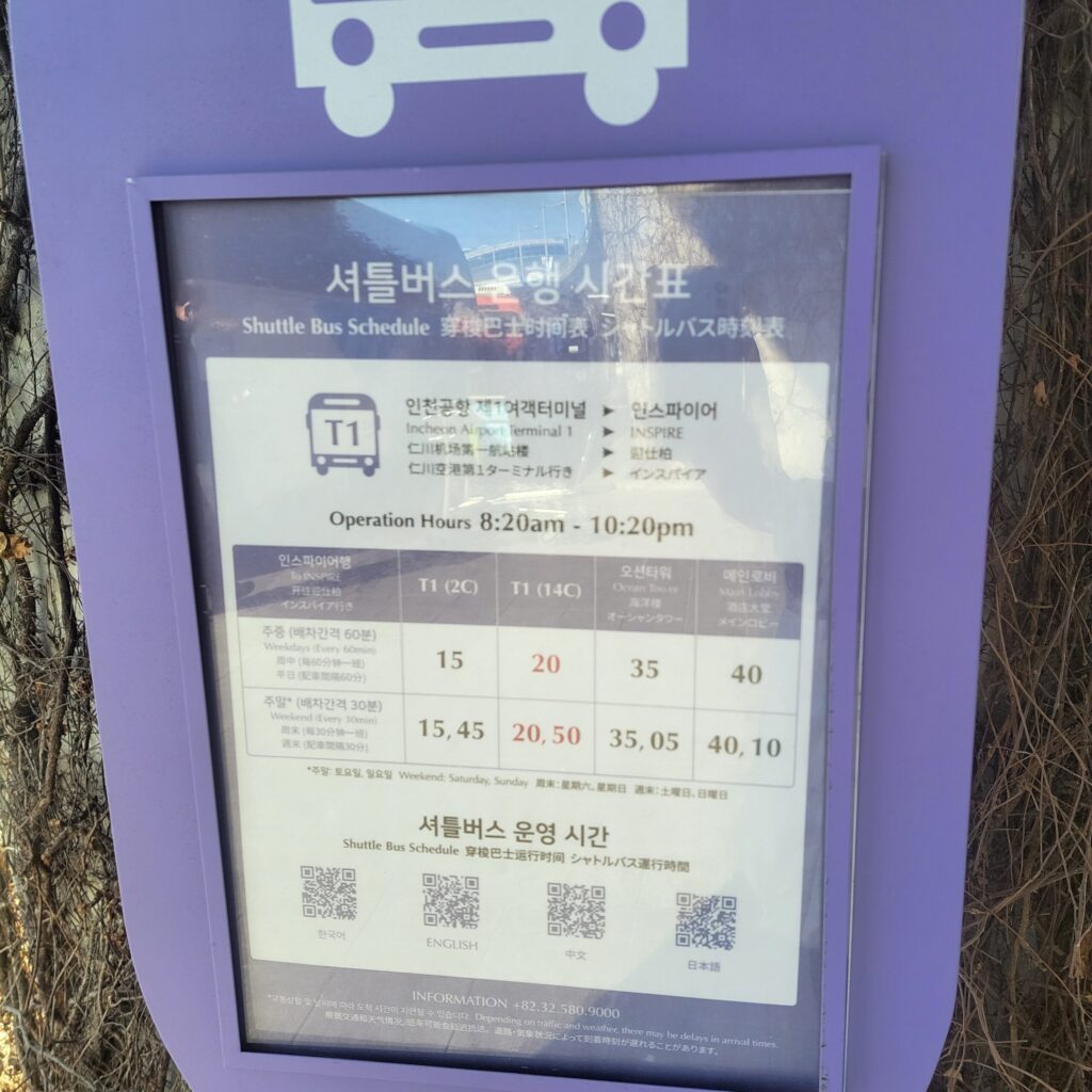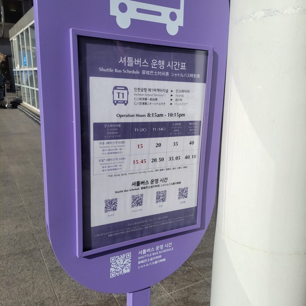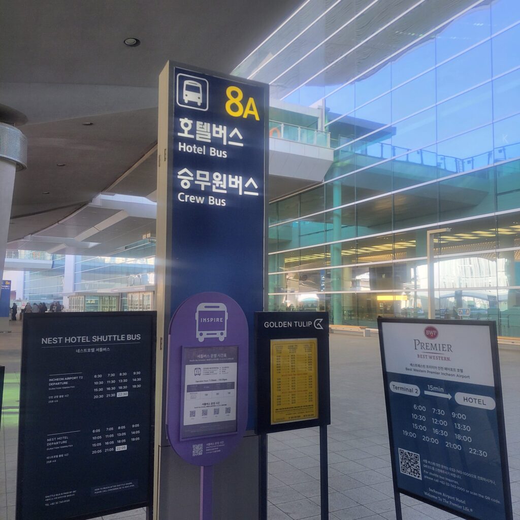 仁川空港第一、第二ターミナルからそれぞれ無料のシャトルバスが出てるよ🤍