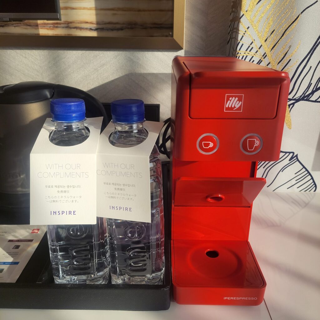 お水もあるし、イリーコーヒーもついてた😆