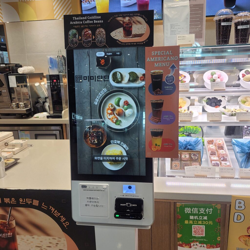 購入方法は、店舗前にキオスクがあるからここからの購入、または定員さんに直接注文だよ👐