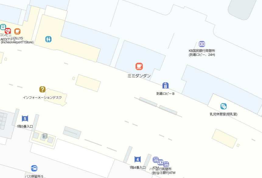 場所は到着ロビー(1階)の出口4/5付近だよ!